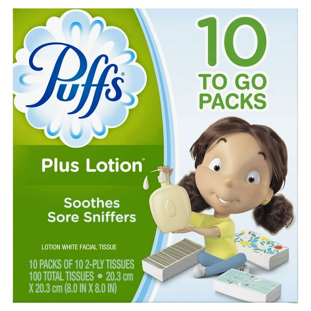 Puffs Plus Lotion Facial Tissues 10 To Go Packs 10 Tissues Per Pack Walmart Com